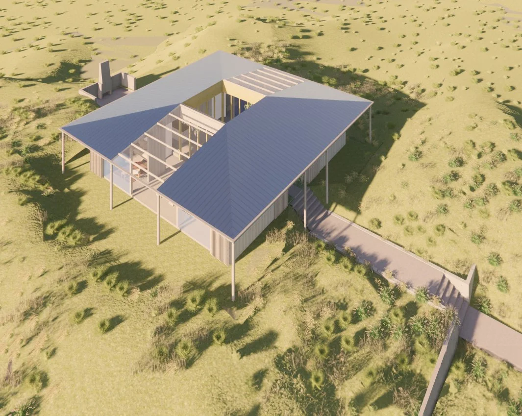 Nestled into the sand dunes of Ohau, this new house is a simple box form with a courtyard at its centre. The owners love of travel mean that time at home is often sporadic. The home is therefore low maintenance: lock up and leave, simple, durable and no fuss.